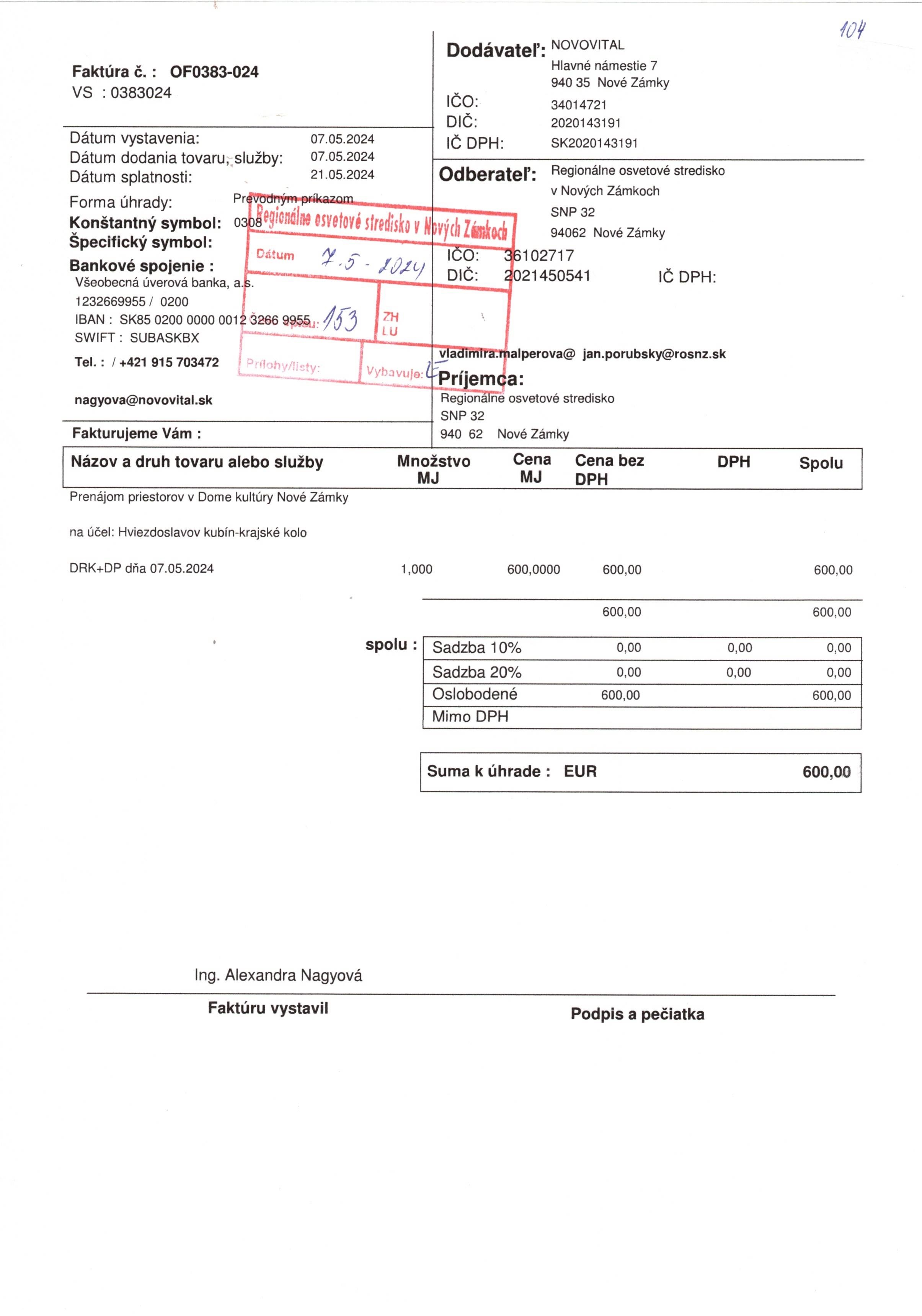 prenájom priestorov "Hviezdoslavov Kubín"-krajské kolo