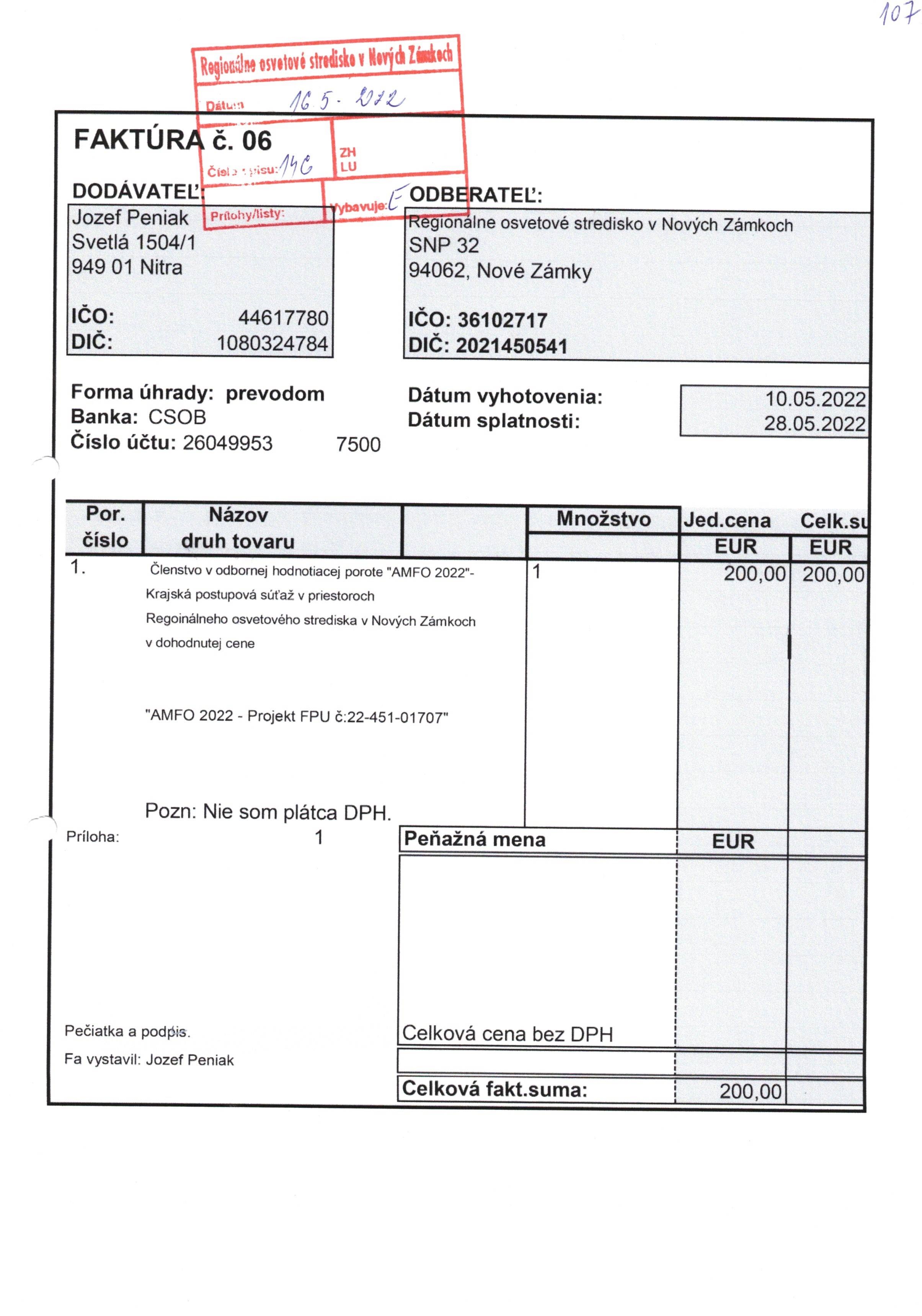 členstvo v odbornej hodnotiacej porote "AMFO 2022"