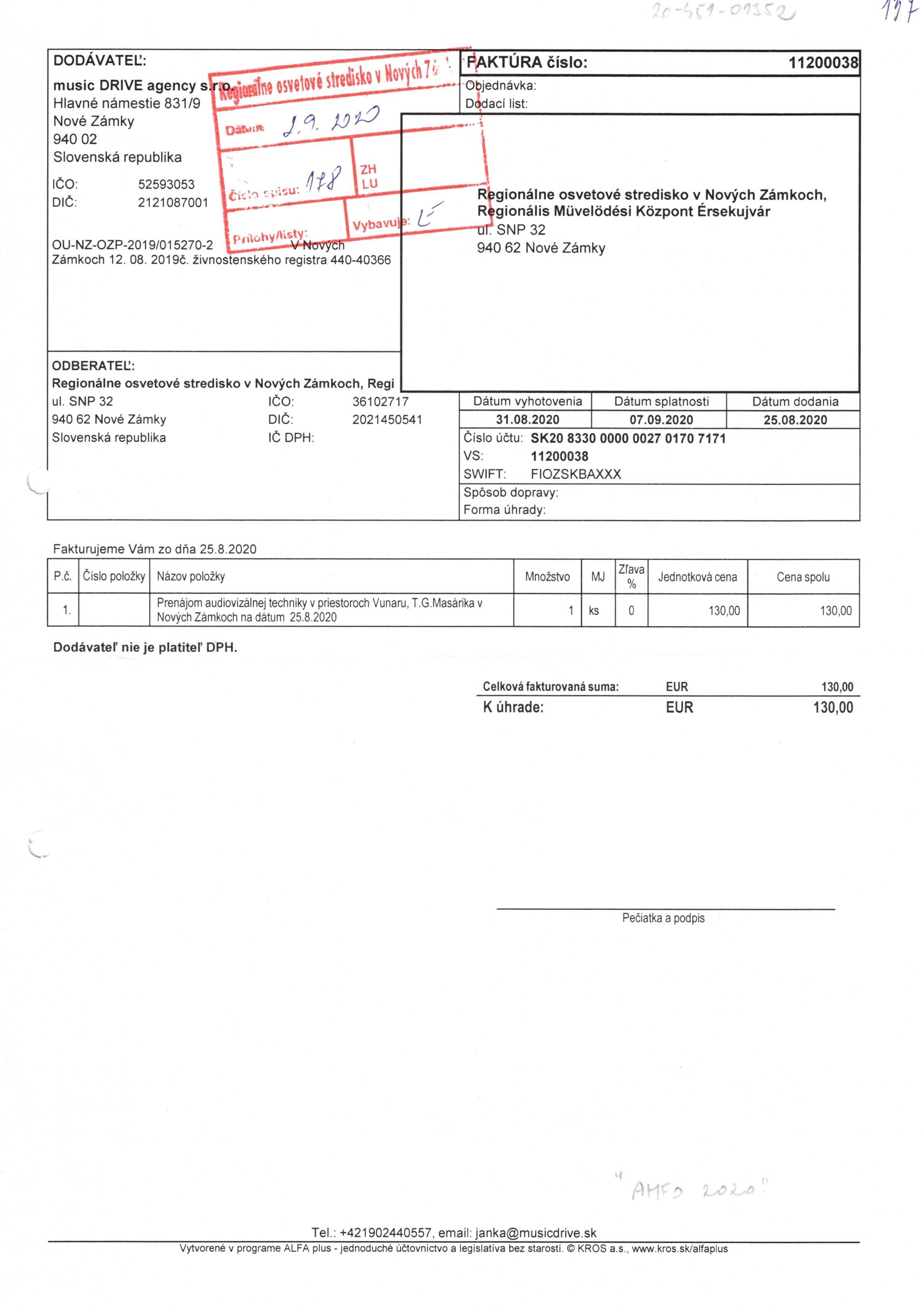 prenájom techniky AMFO 2020