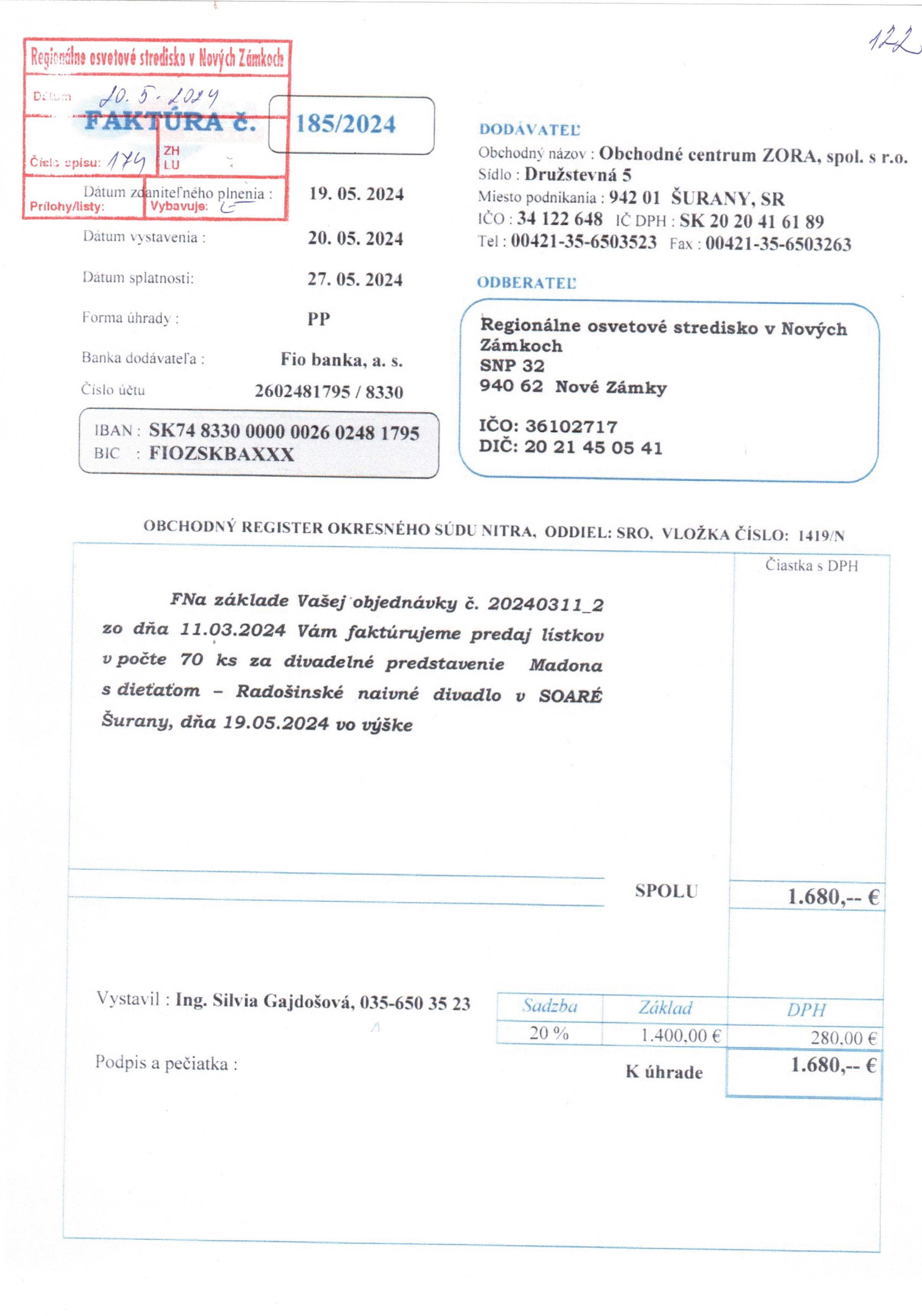 lístky na predstavenie: "Madona s dieťaťom"