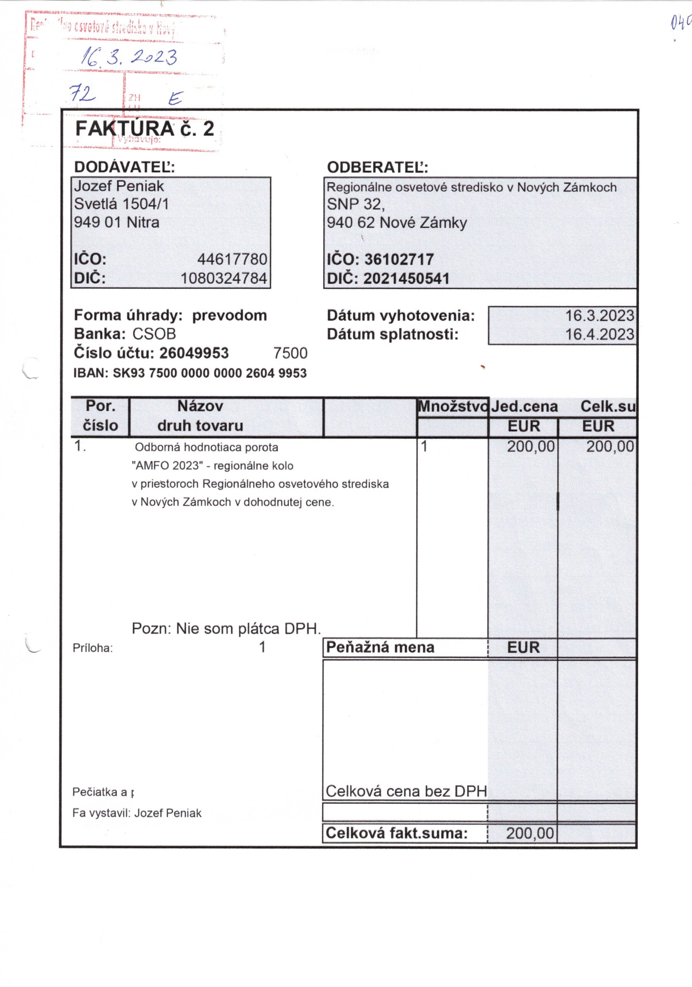 členstvo v odbornej hodnotiacej porote "AMFO 2023"