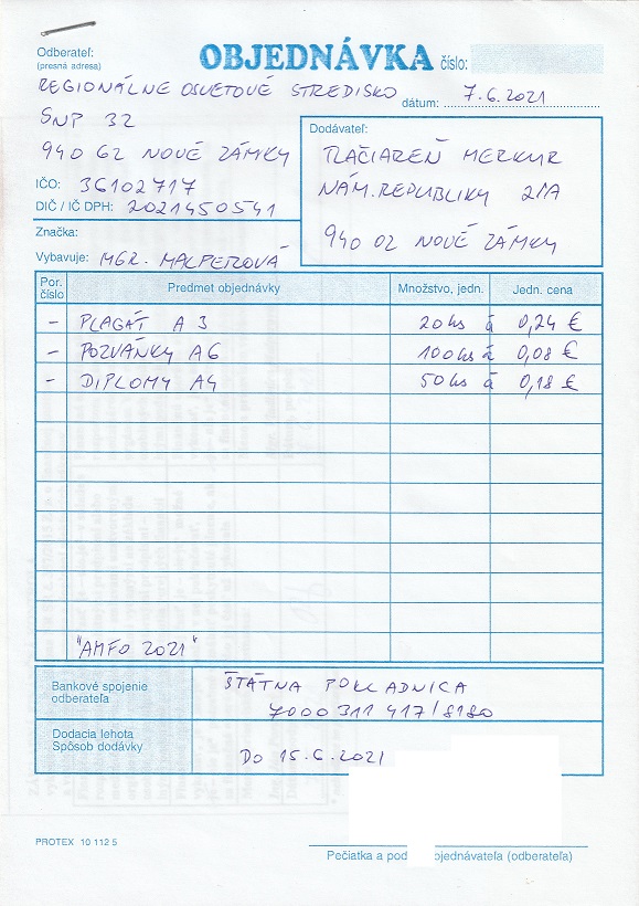 tlač plagátov, pozvánok, diplomov "AMFO 2021"