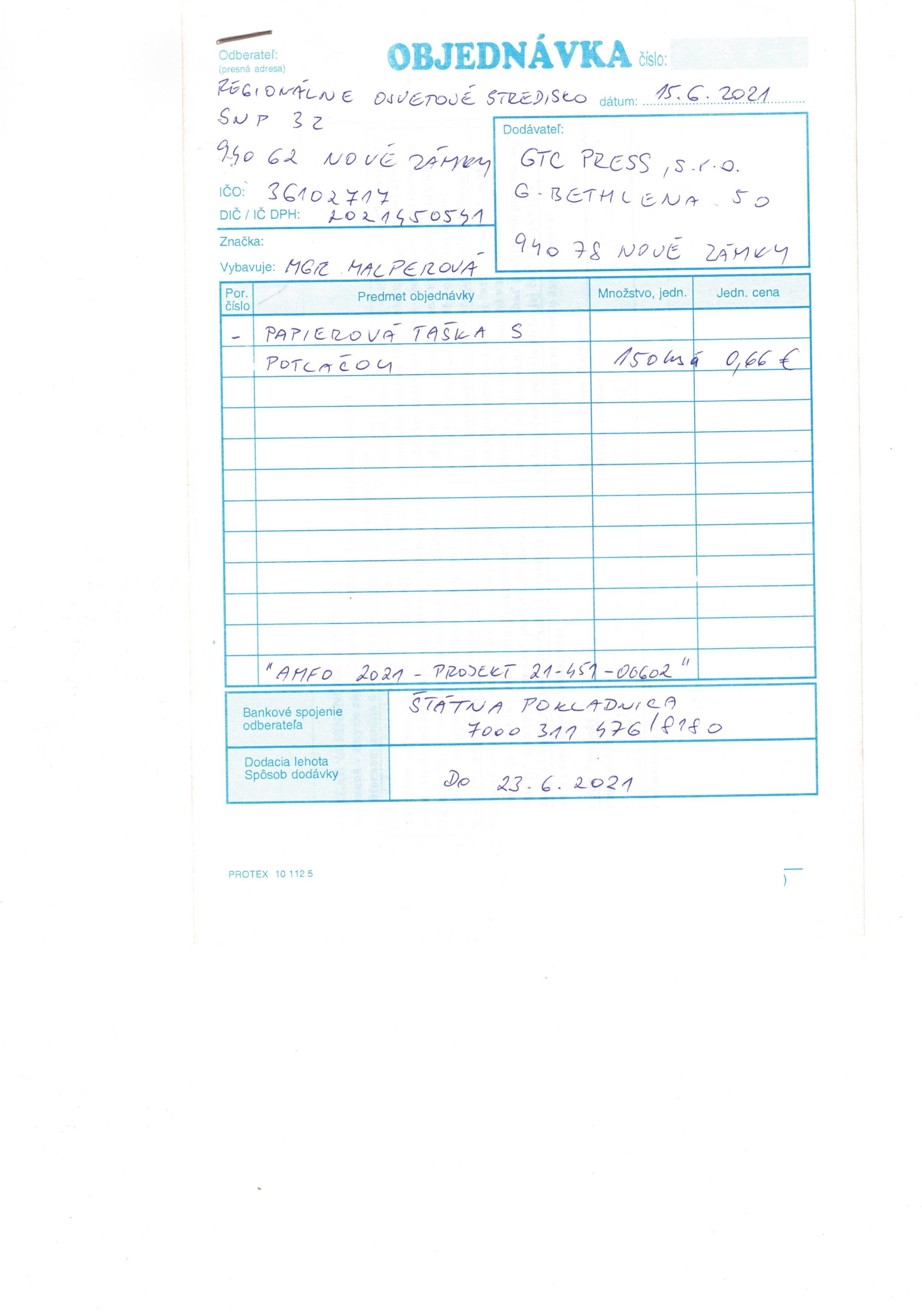 papierová taška s potlačou "AMFO 2021"