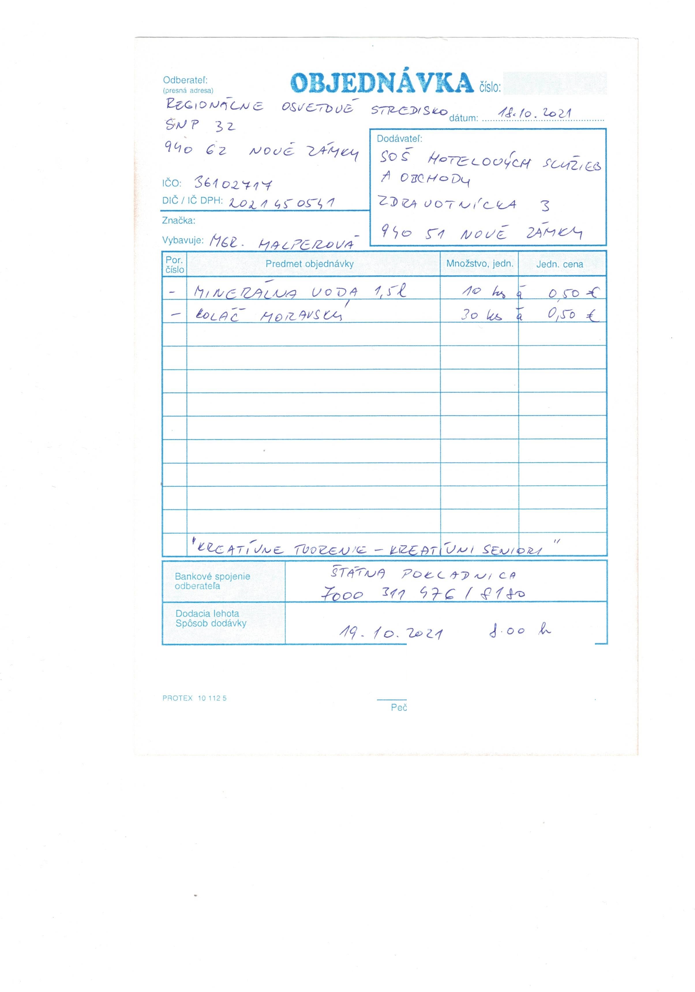 občerstvenie "Kreatívne tvorenie - Kreatívni seniori"