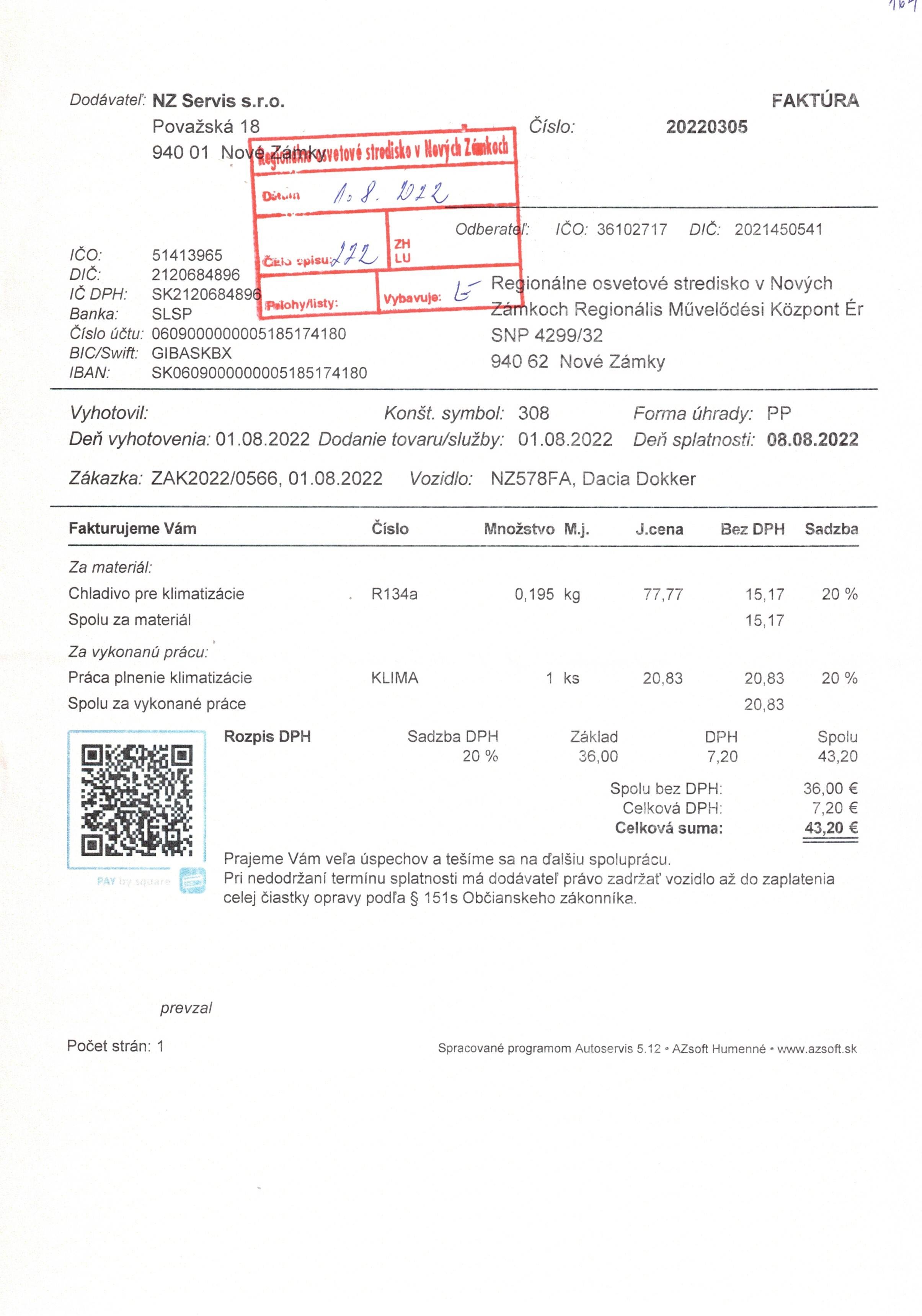 doplnenie klimatizácie Dacia