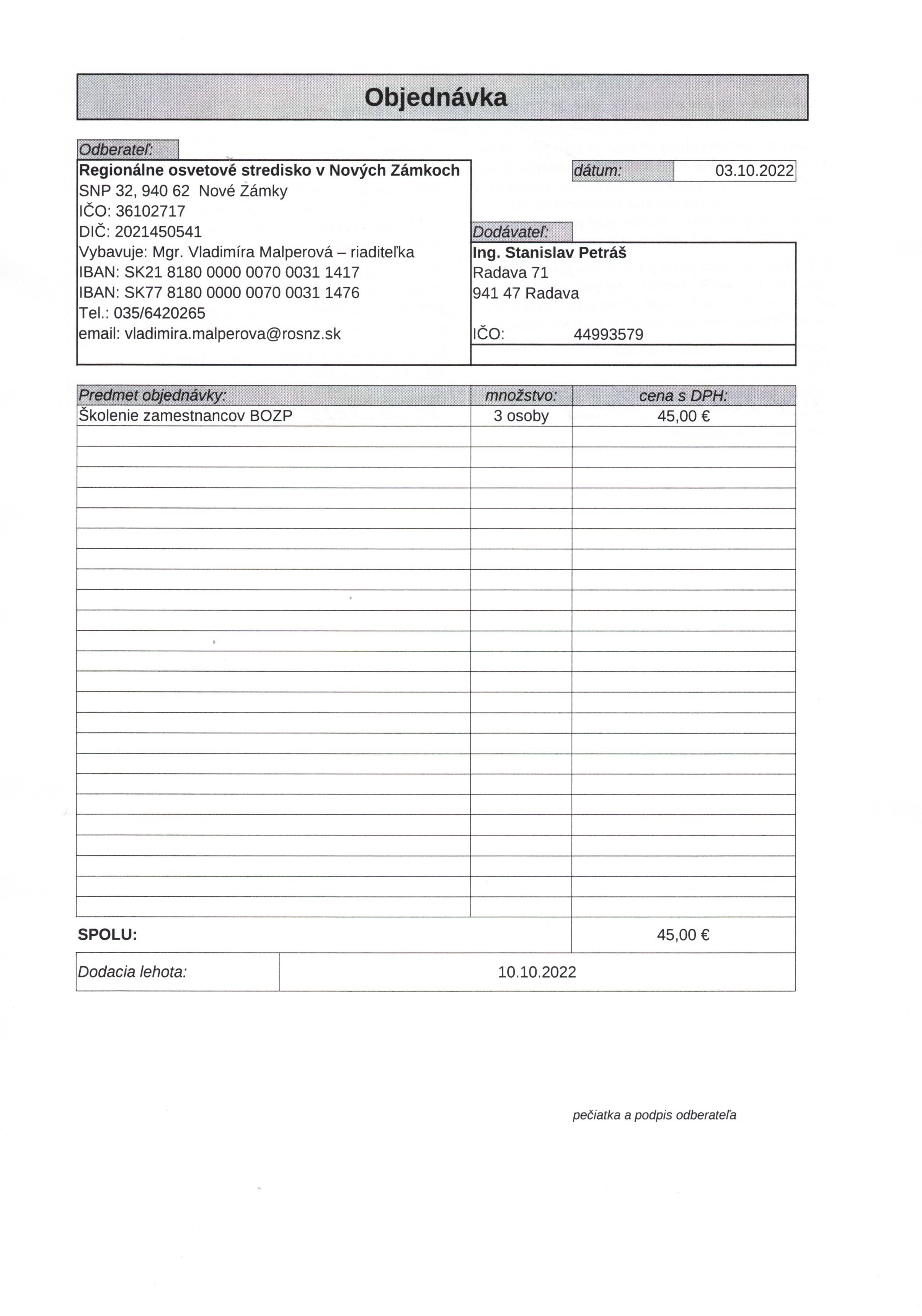 Dodávateľ / Odberateľ / Zmluvná strana