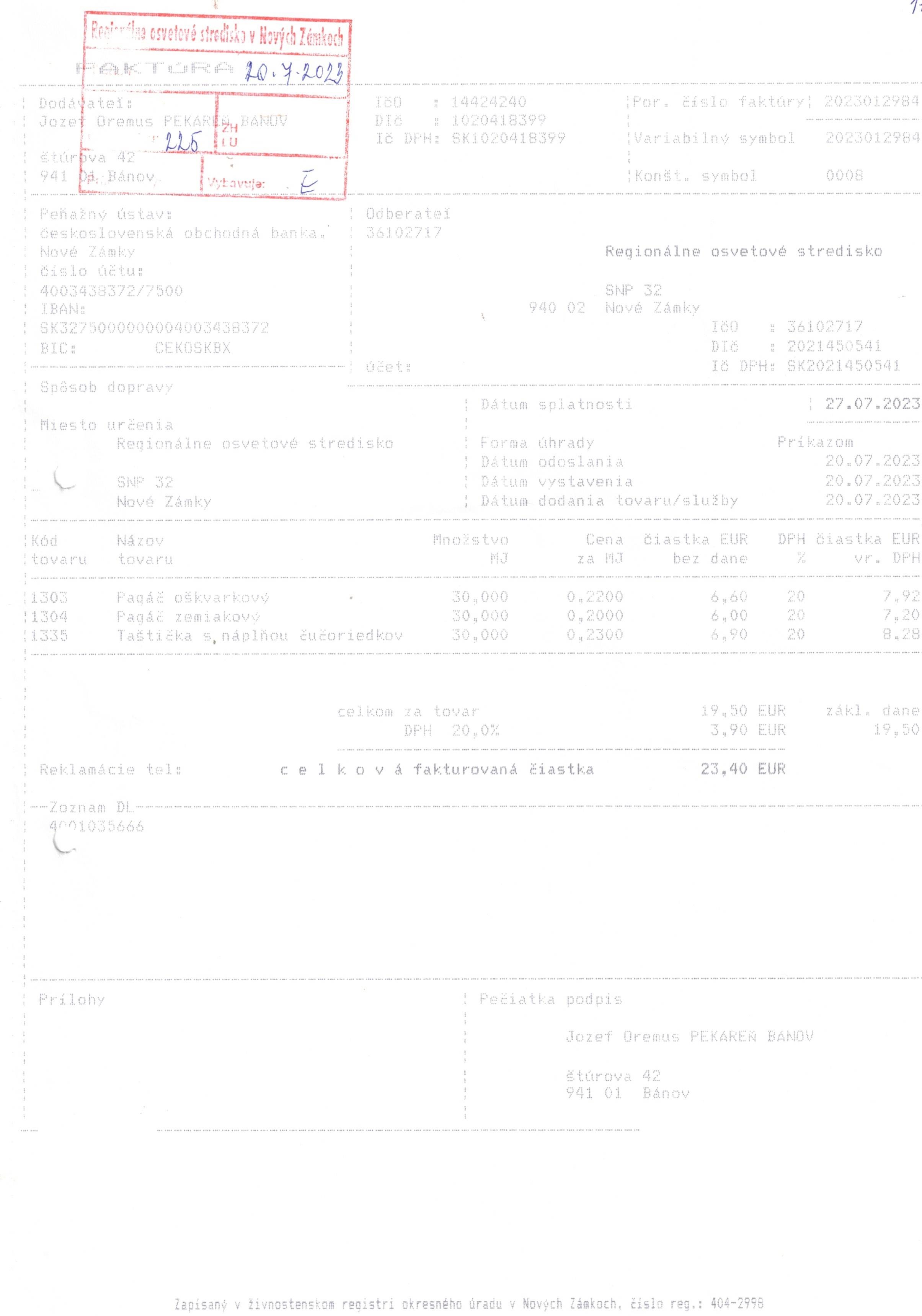 Jozef Oremus-pekáreň Bánov