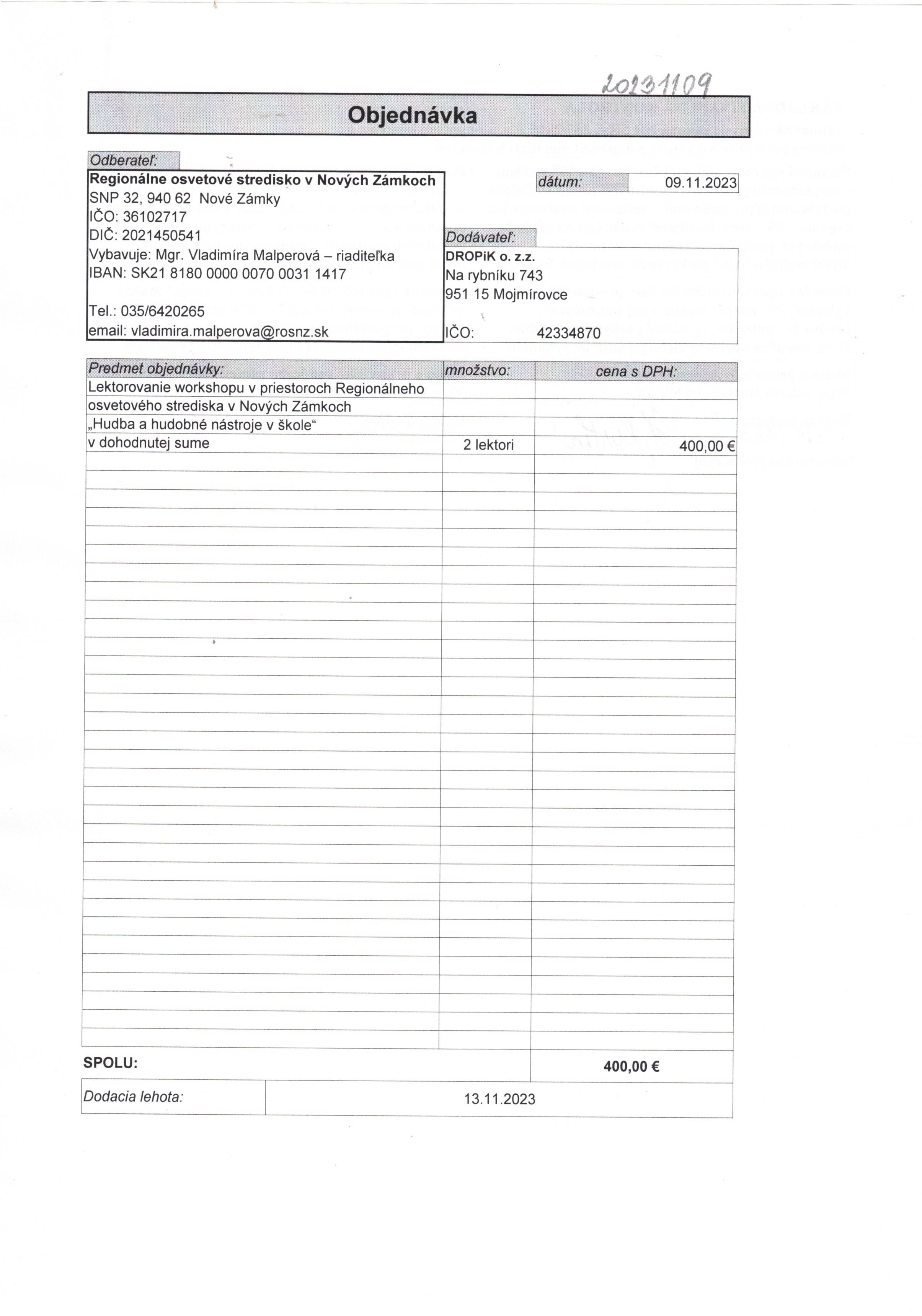 lektorovanie workshopu "Hudba a hudobné nástroje v škole"