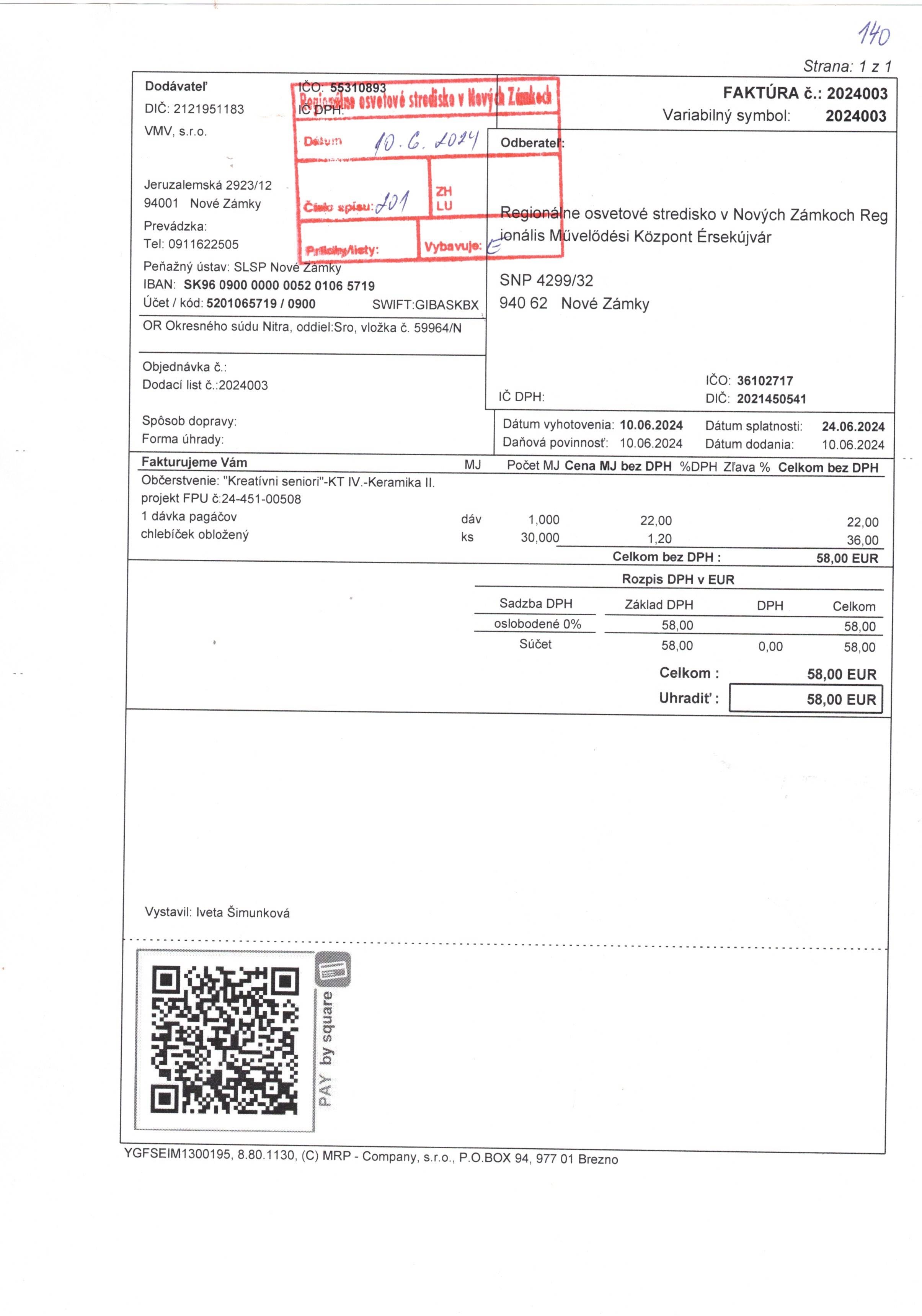 občerstvenie "KT IV -Kreatívni seniori-Keramika II"
