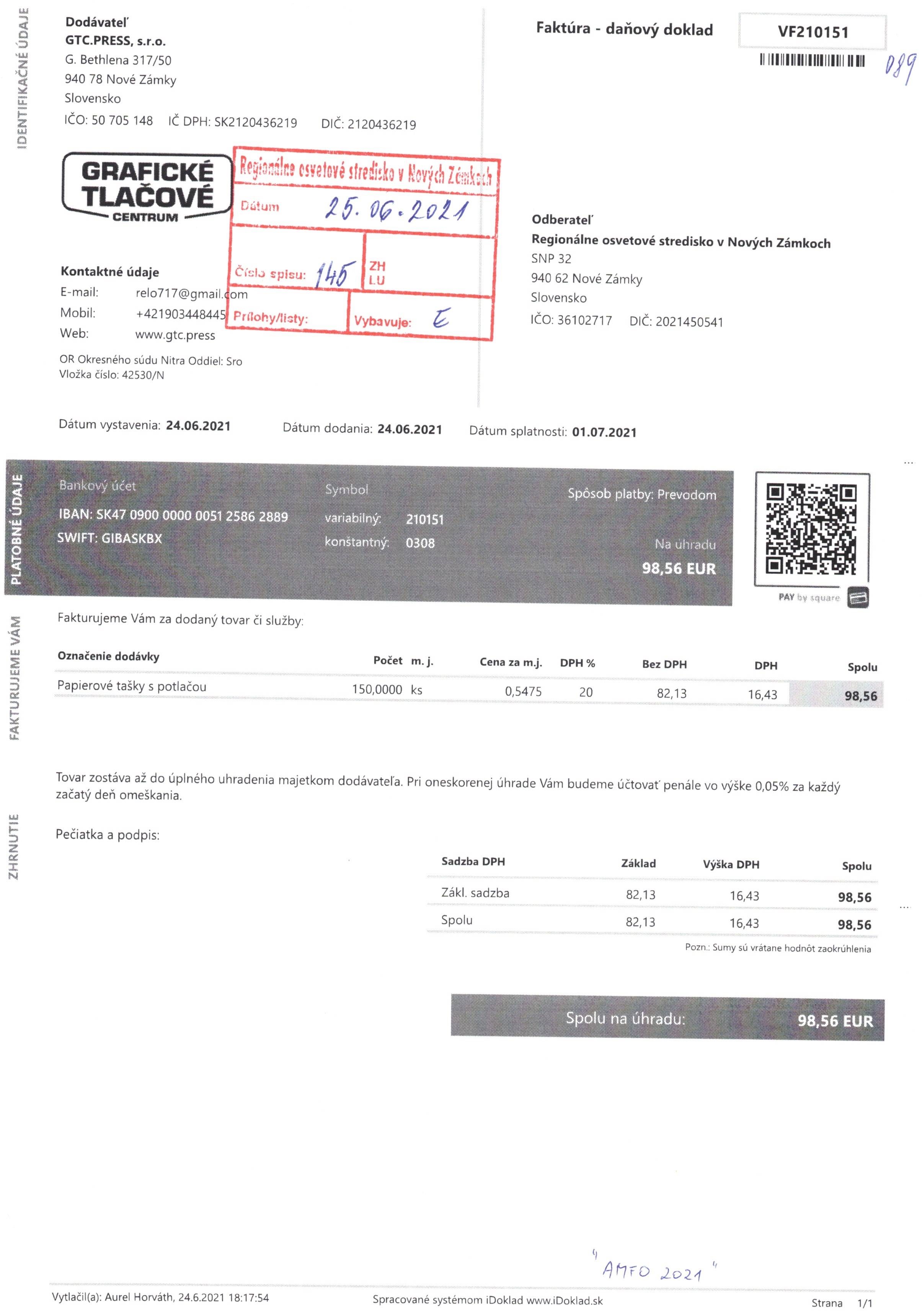 papierová taška s potlačou "AMFO 2021"