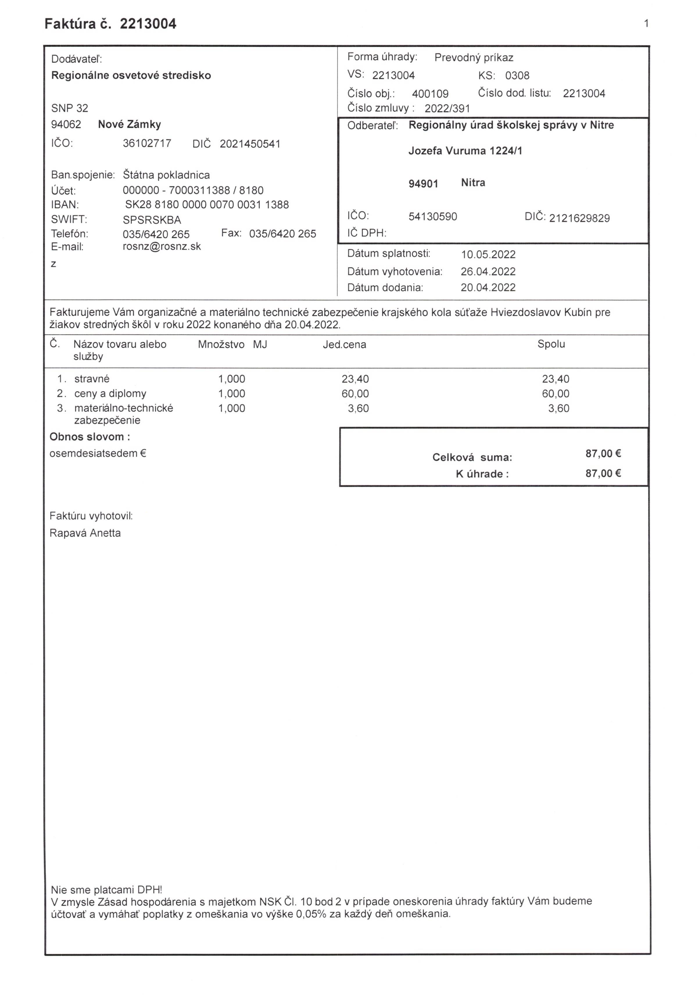 zabezpečenie súťaže "Hviezdoslavov Kubín"
