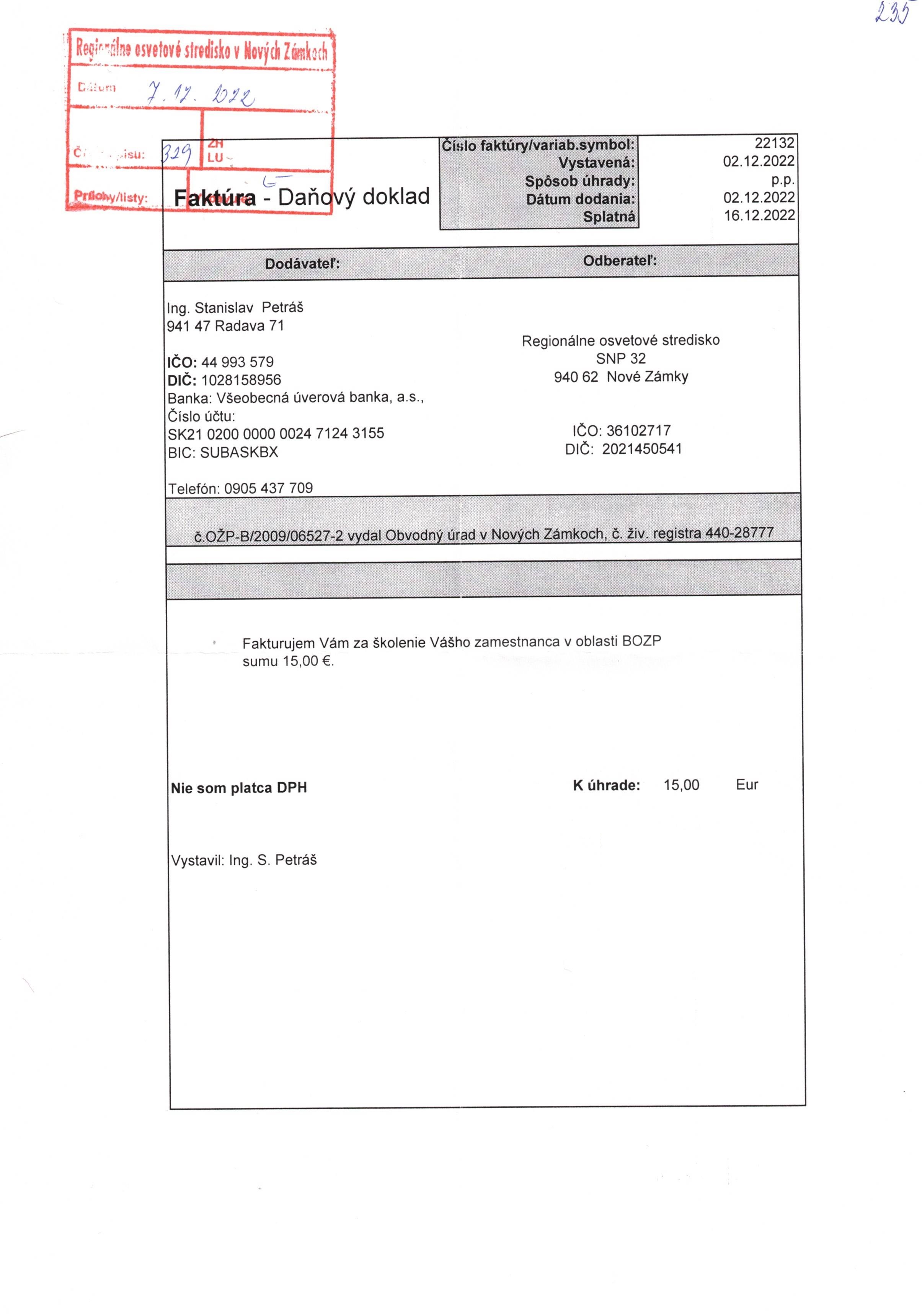 poplatok za školenie