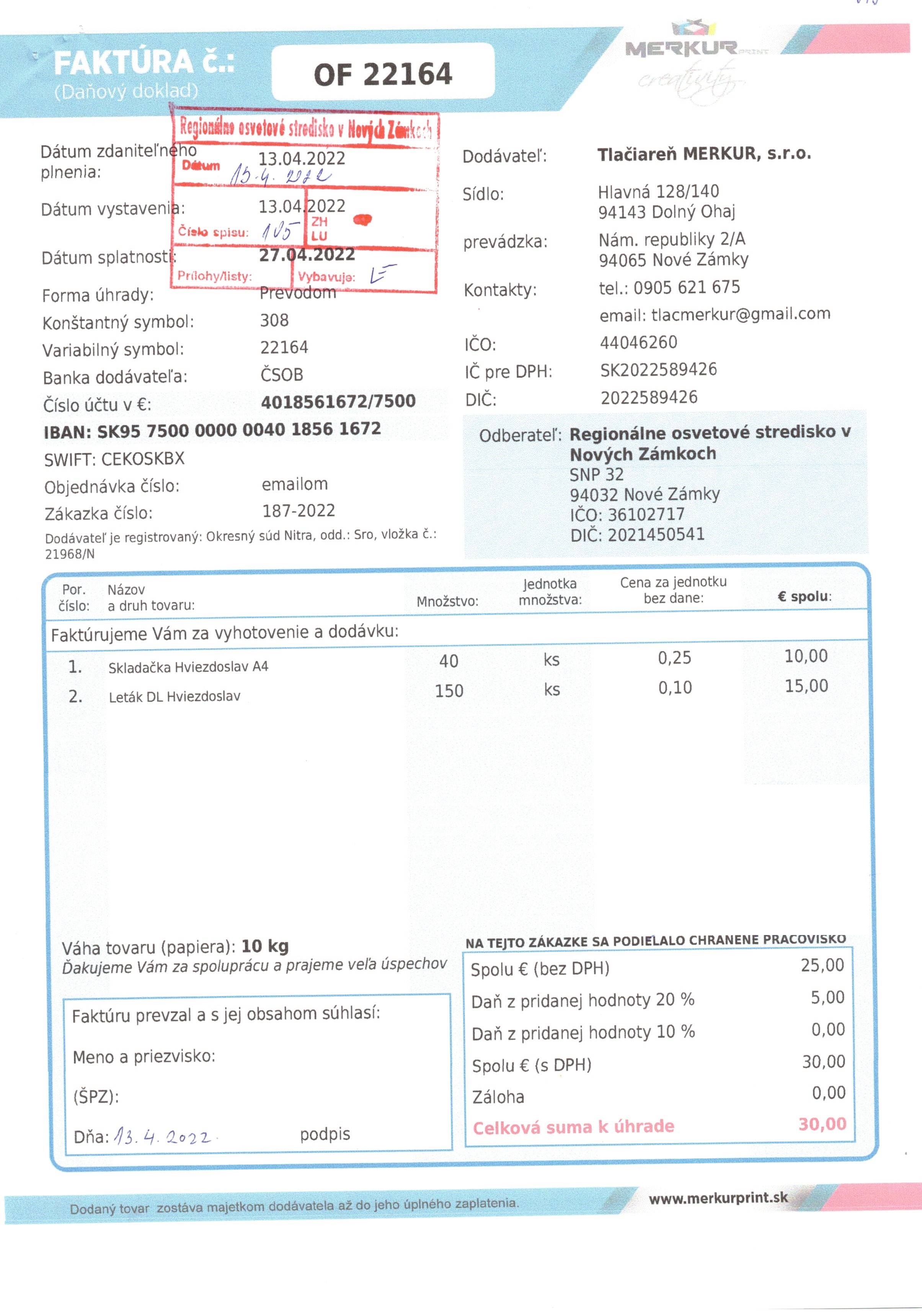 tlač pozvánok, skladačky "Hviezdoslavov Kubín 2022"