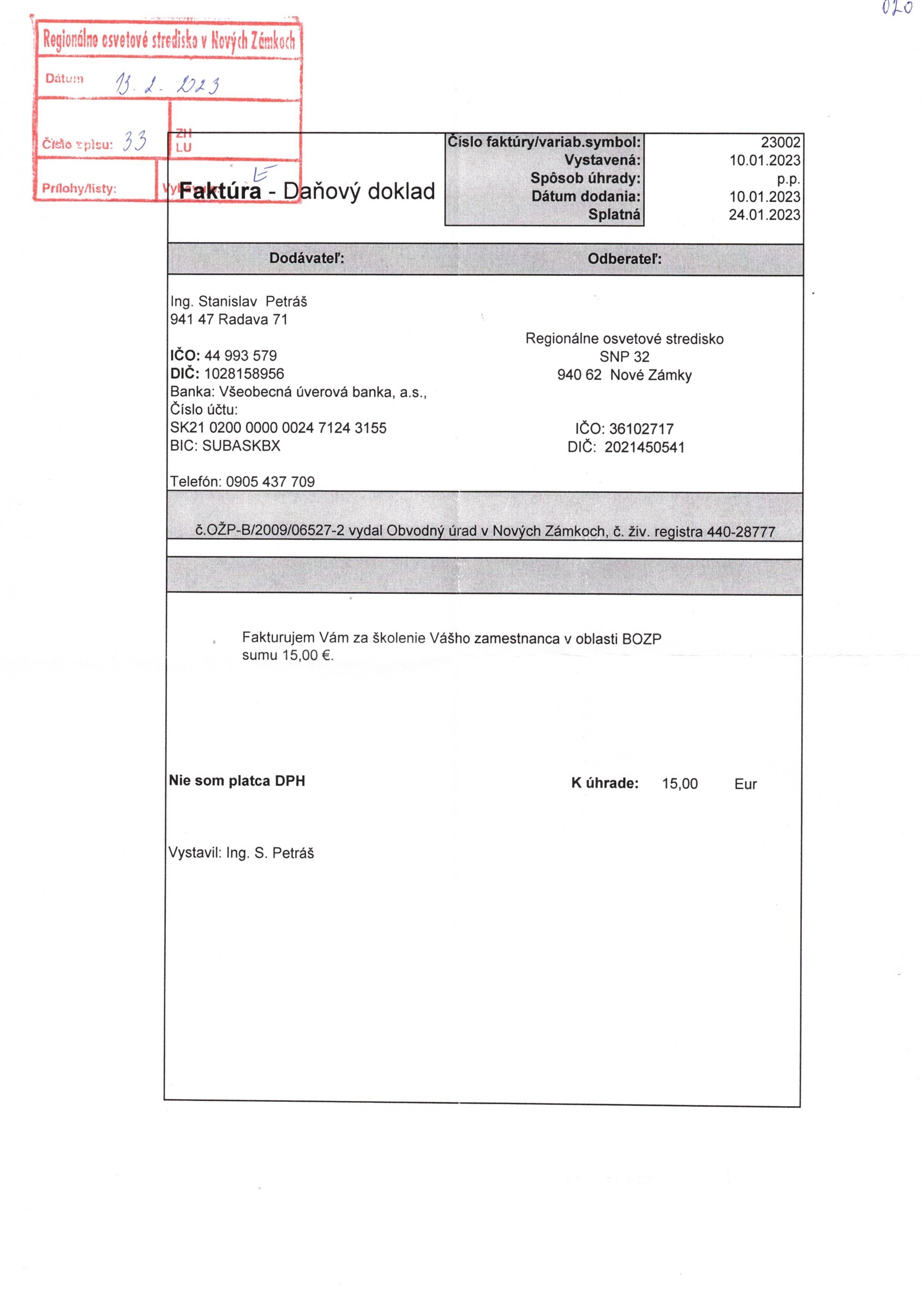 poplatok za školenie