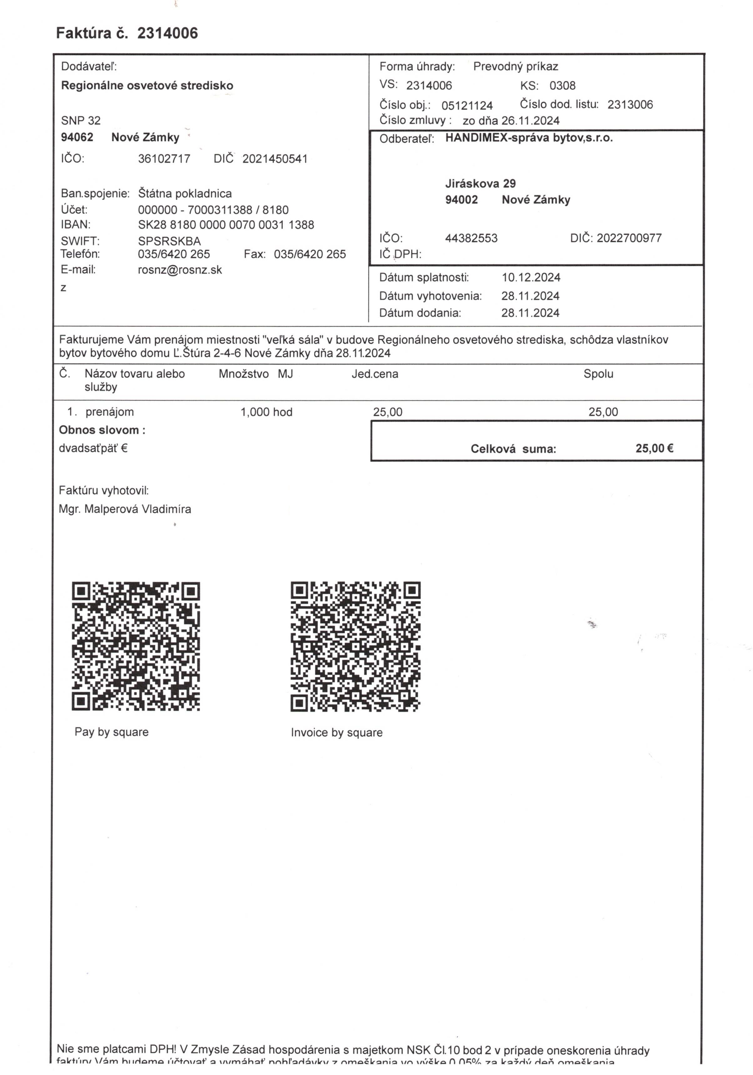 prenájom priestorov: veľká sála