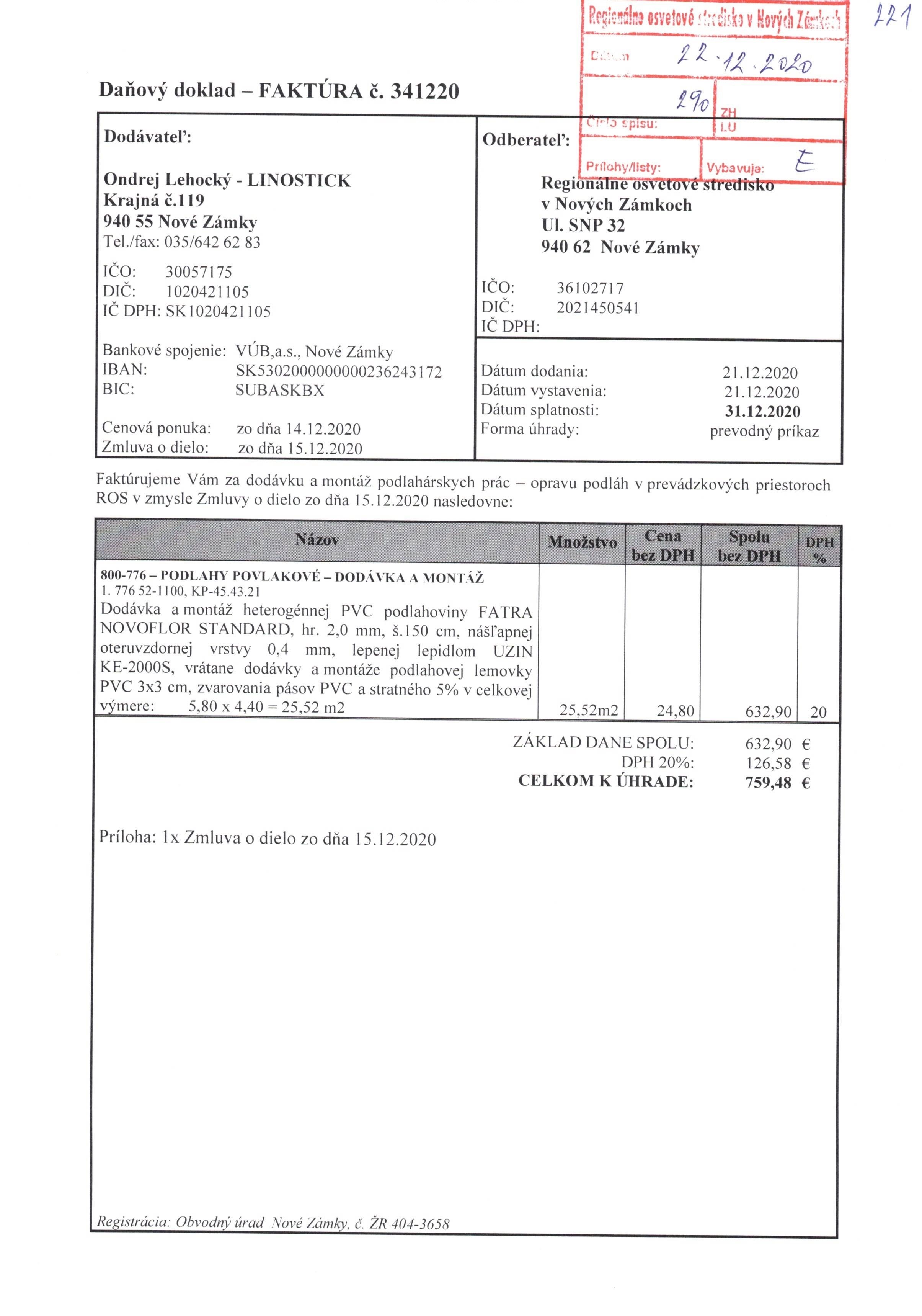 oprava a výmena podlahovej krytiny - učebňa "C"