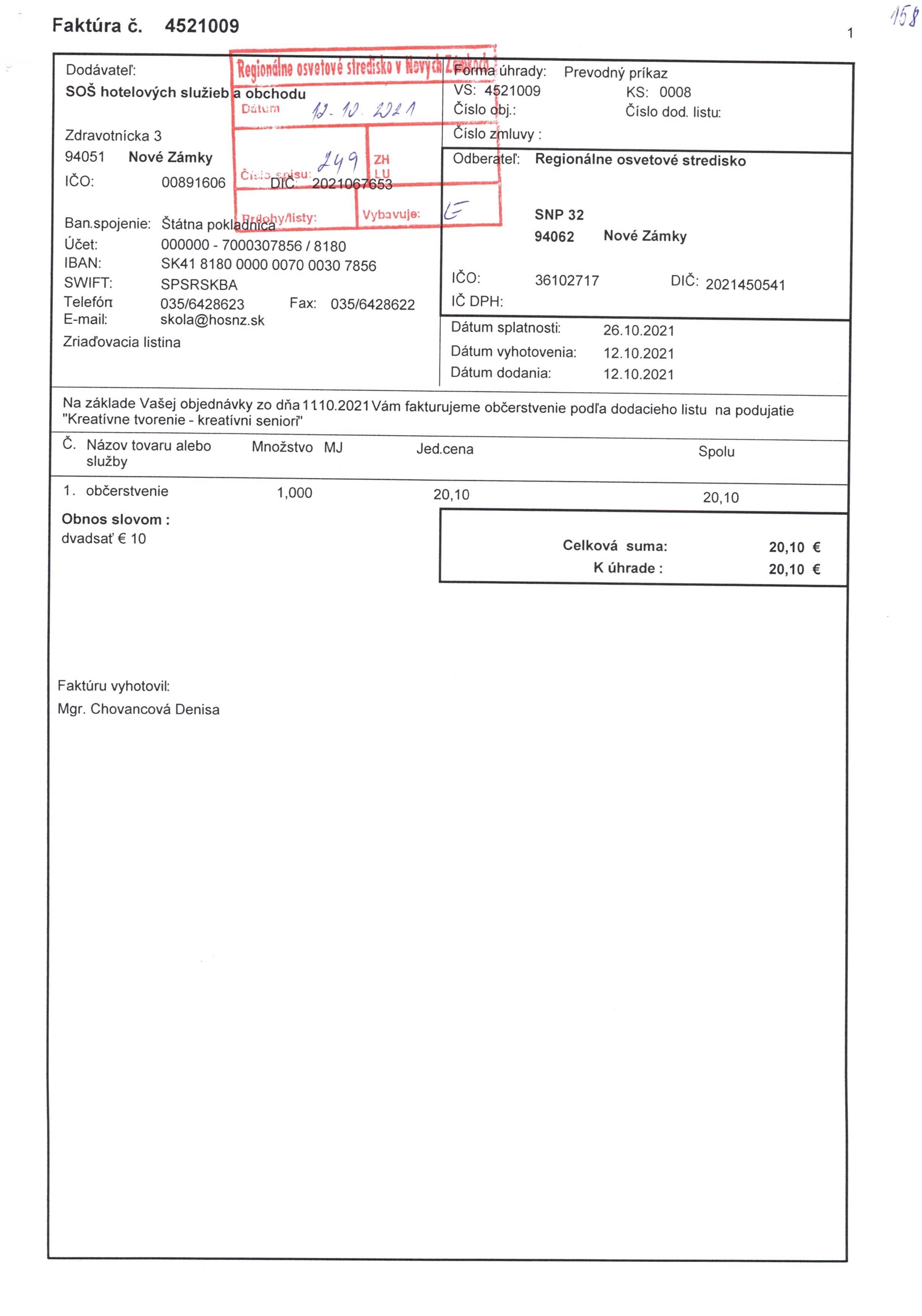 občerstvenie "Kreatívne tvorenie - Kreatívni seniori"
