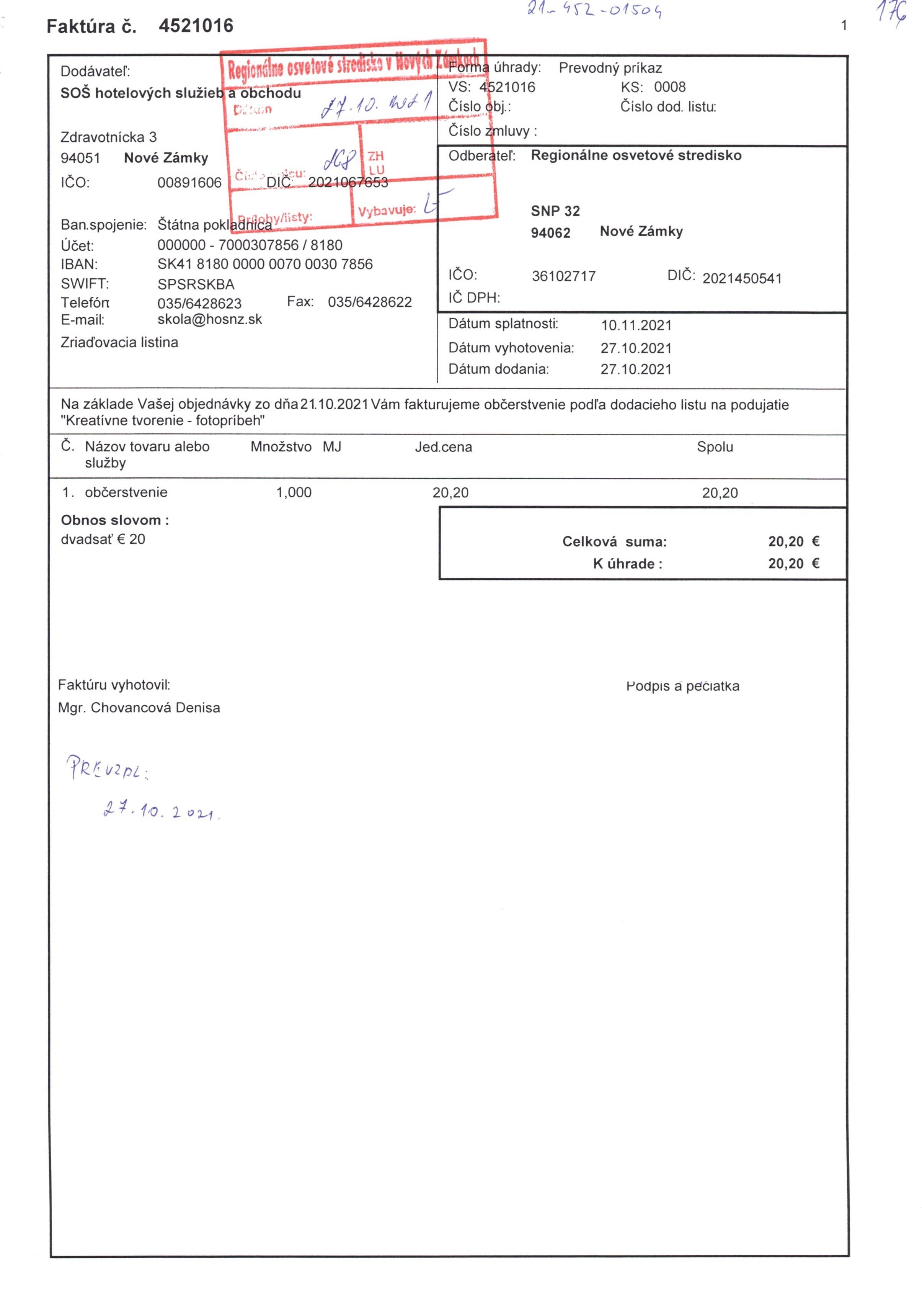 občerstvenie "Kreatívne tvorenie - Fotopríbeh"