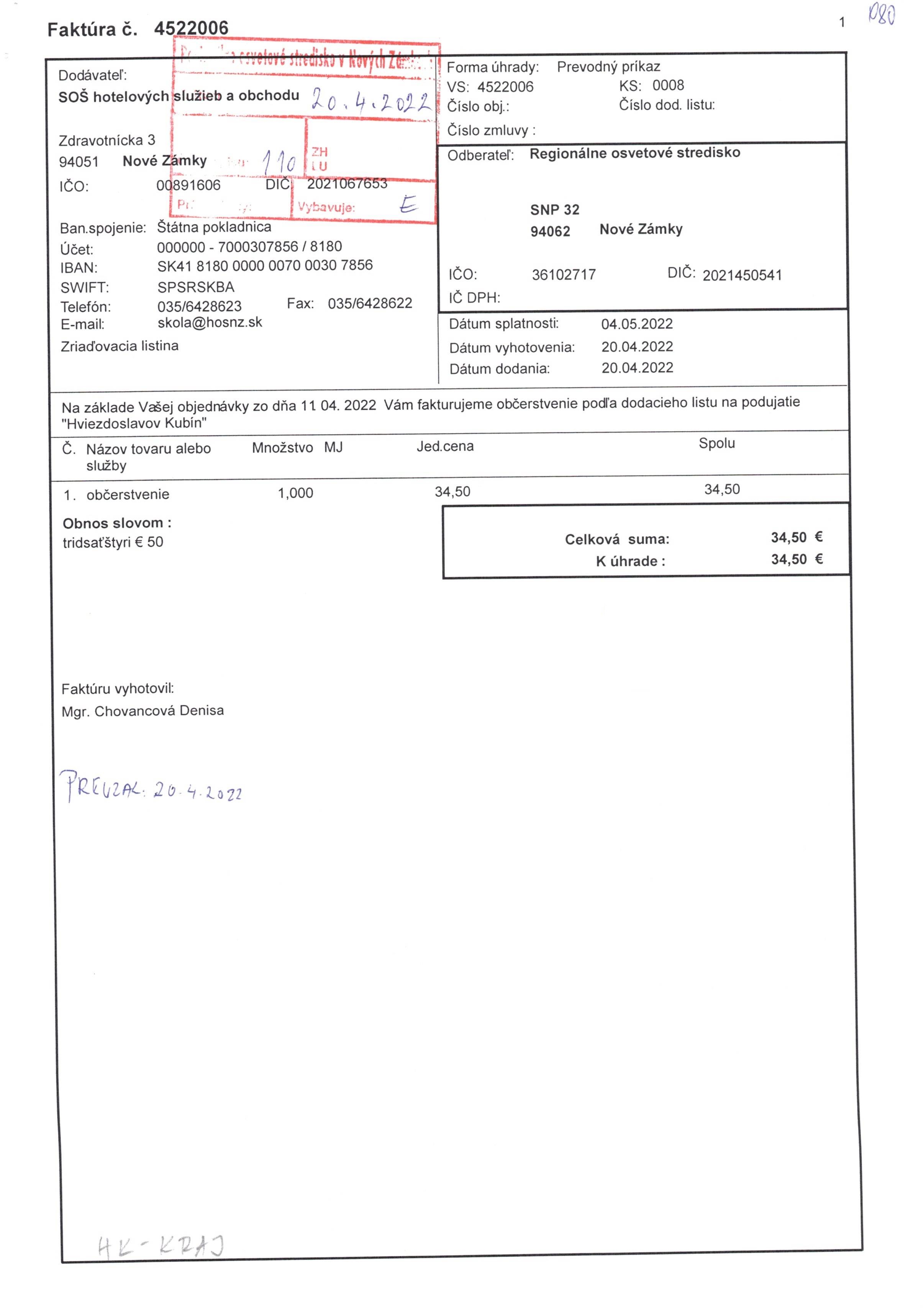 občerstvenie "Hviezdoslavov Kubín 2022" - krajská prehliadka
