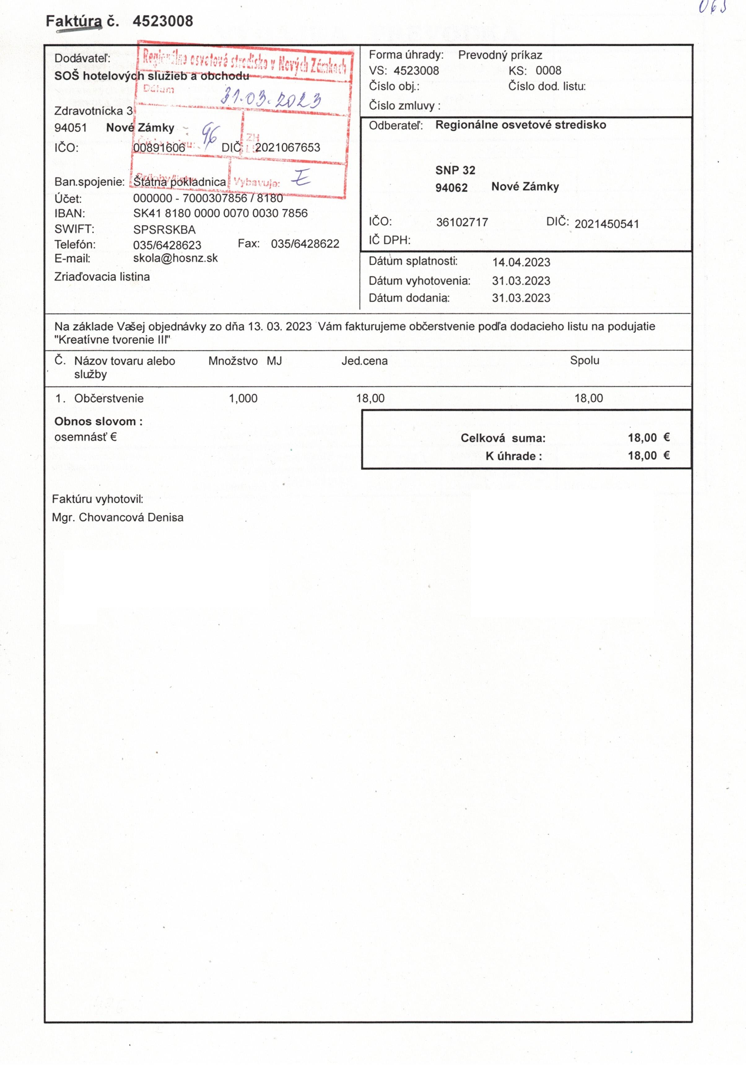občerstvenie "Kreatívne tvorenie III"