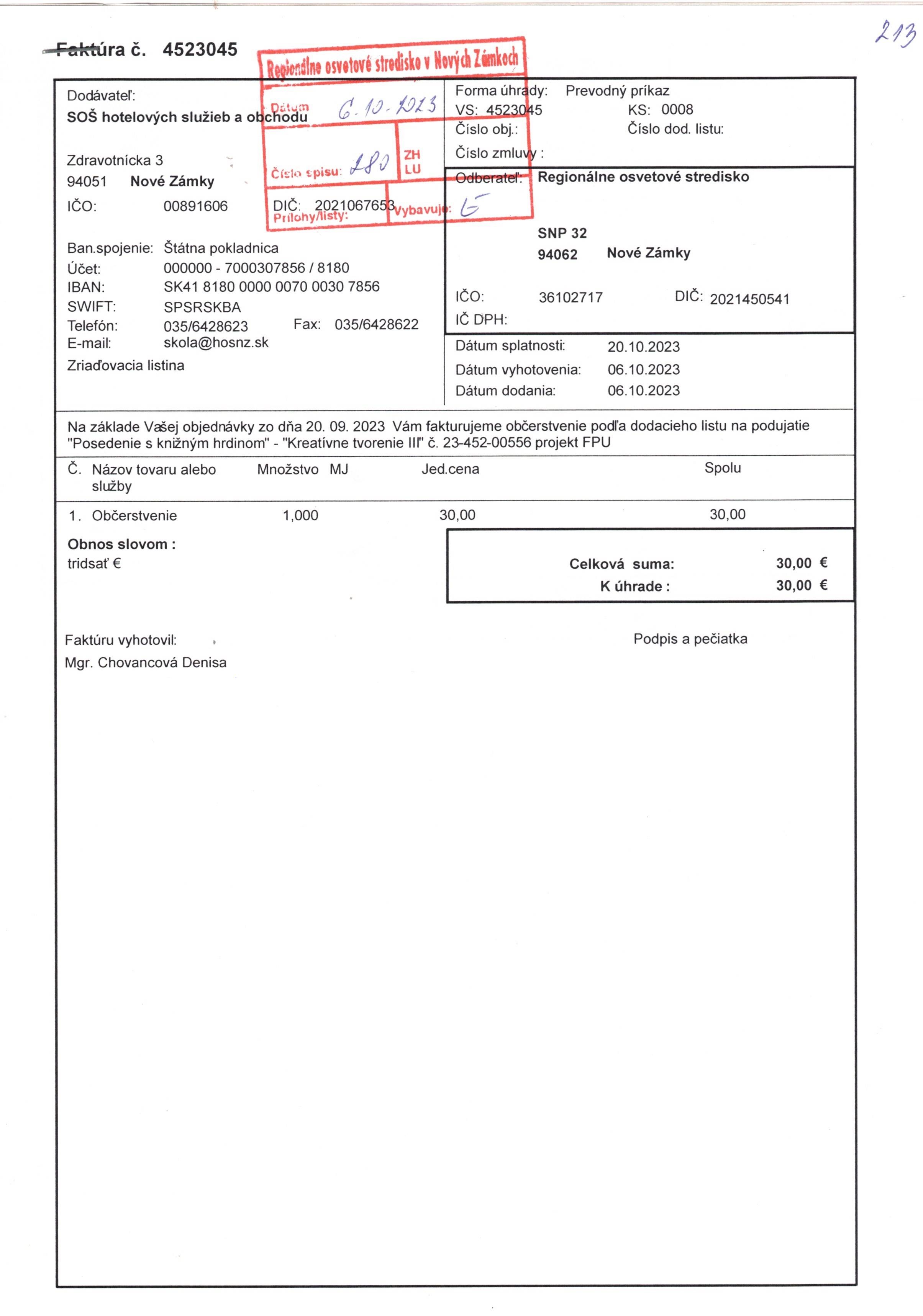 občerstvenie "Kreatívne tvorenie III - Posedenie s knižným hrdinom"