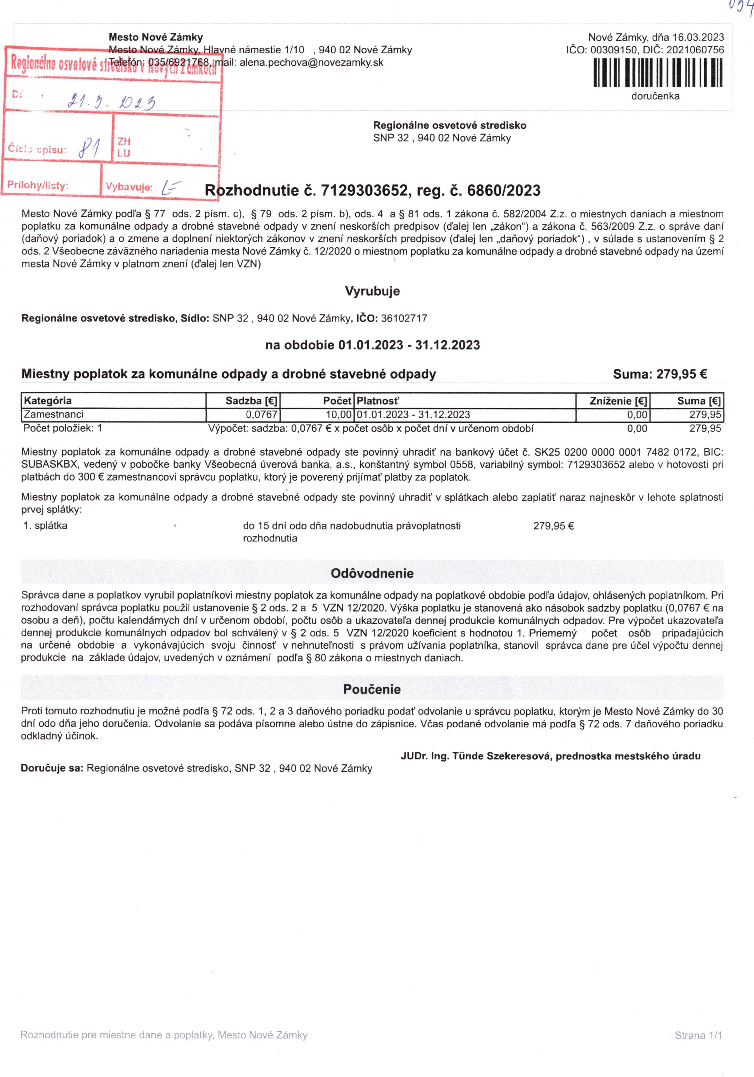 poplatok za komunálny odpad 2023